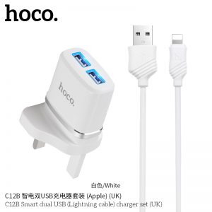 Hoco C12B Dual USB Smart Dual Ports Charger With Lightning Cable (UK)