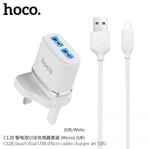 Hoco C12B Dual USB Smart Dual Ports Charger With Micro USB Cable (UK)