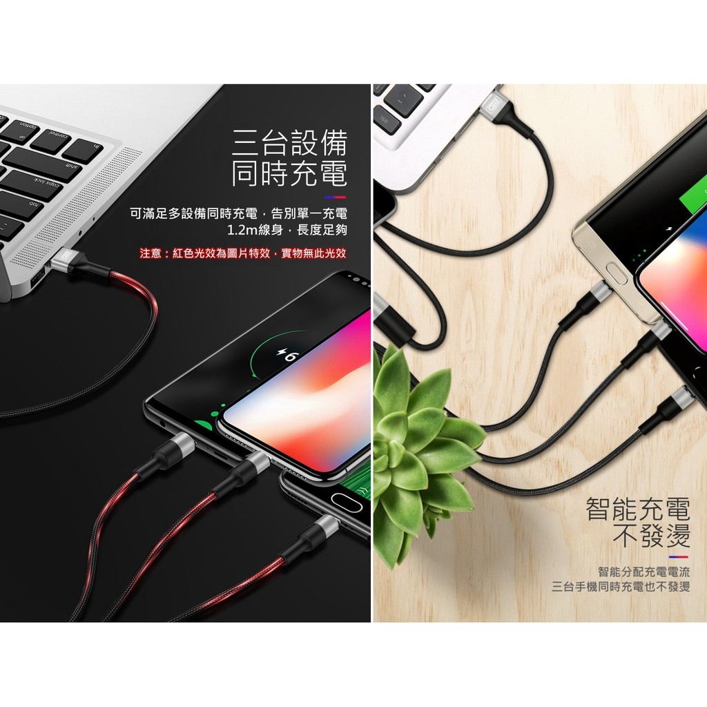 – Helps users to comfortably charge 3 devices at the same time with 3 different chargers extremely handy instead of using 3 separate cables