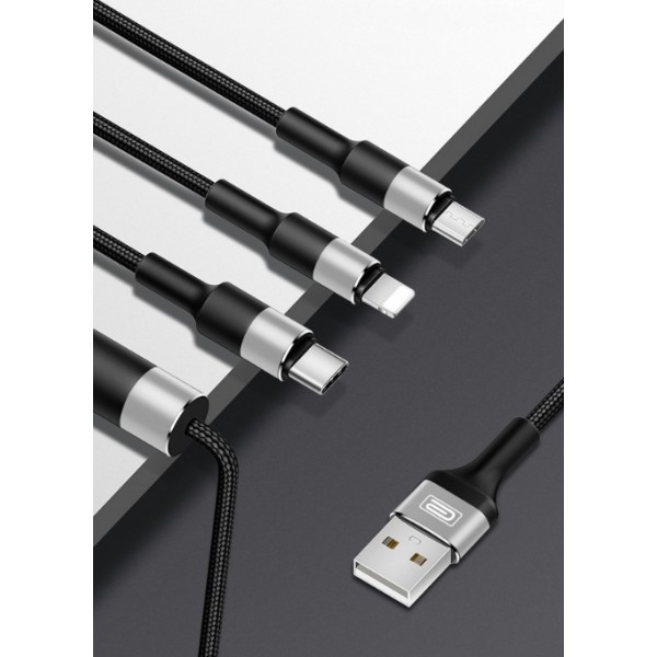 EARLDOM EC-IMC041 Metal NYLON 3 IN 1 USB Data Cable 1200mm