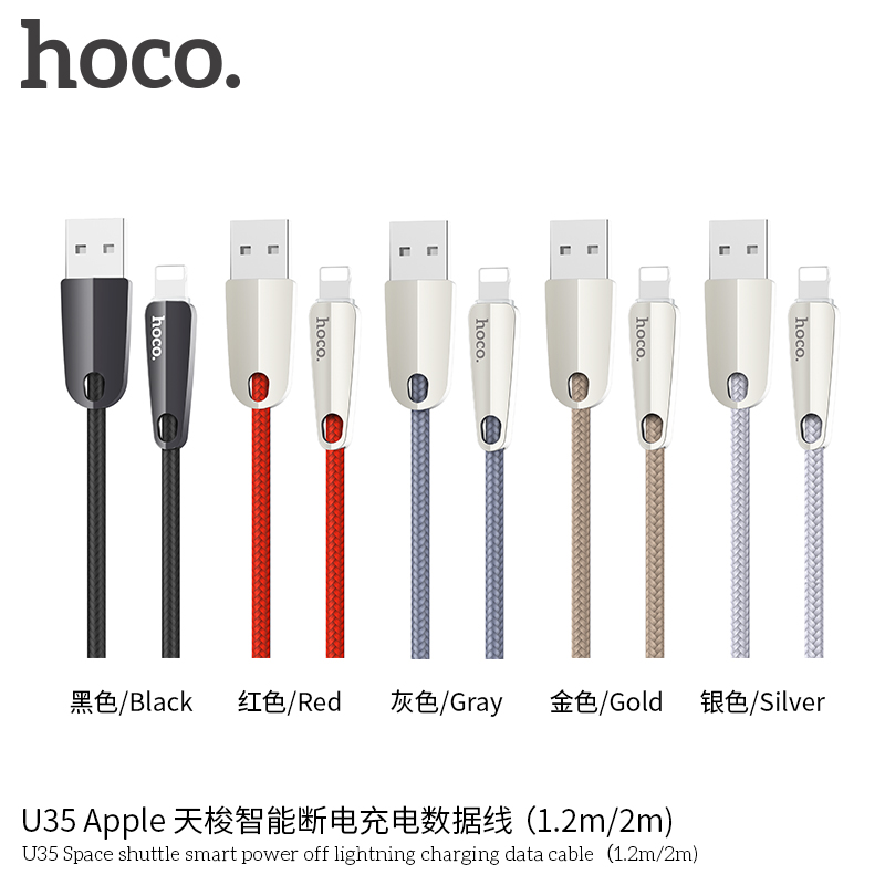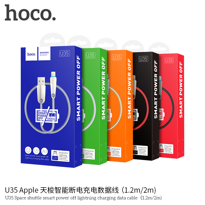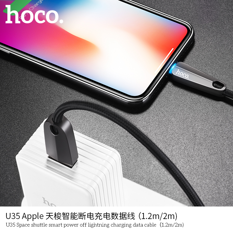 / Hoco U35 2.4A Smart Power Auto Cut Off Fast Charging USB LED Cable Lightning