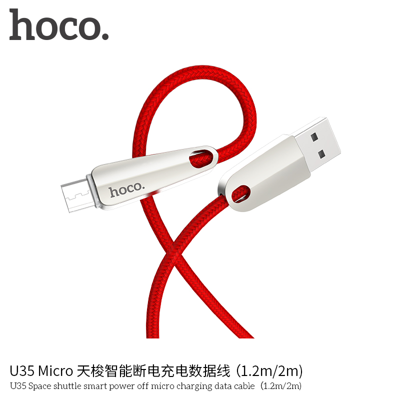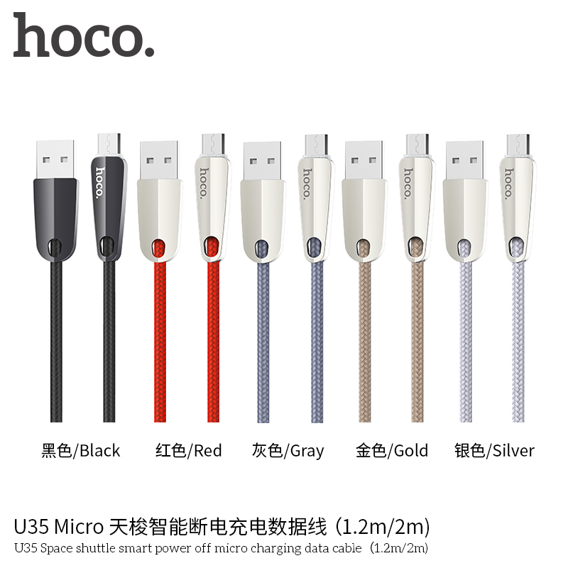 Hoco U35 2.4A Smart Power Auto Cut Off Fast Charging USB LED Cable Micro